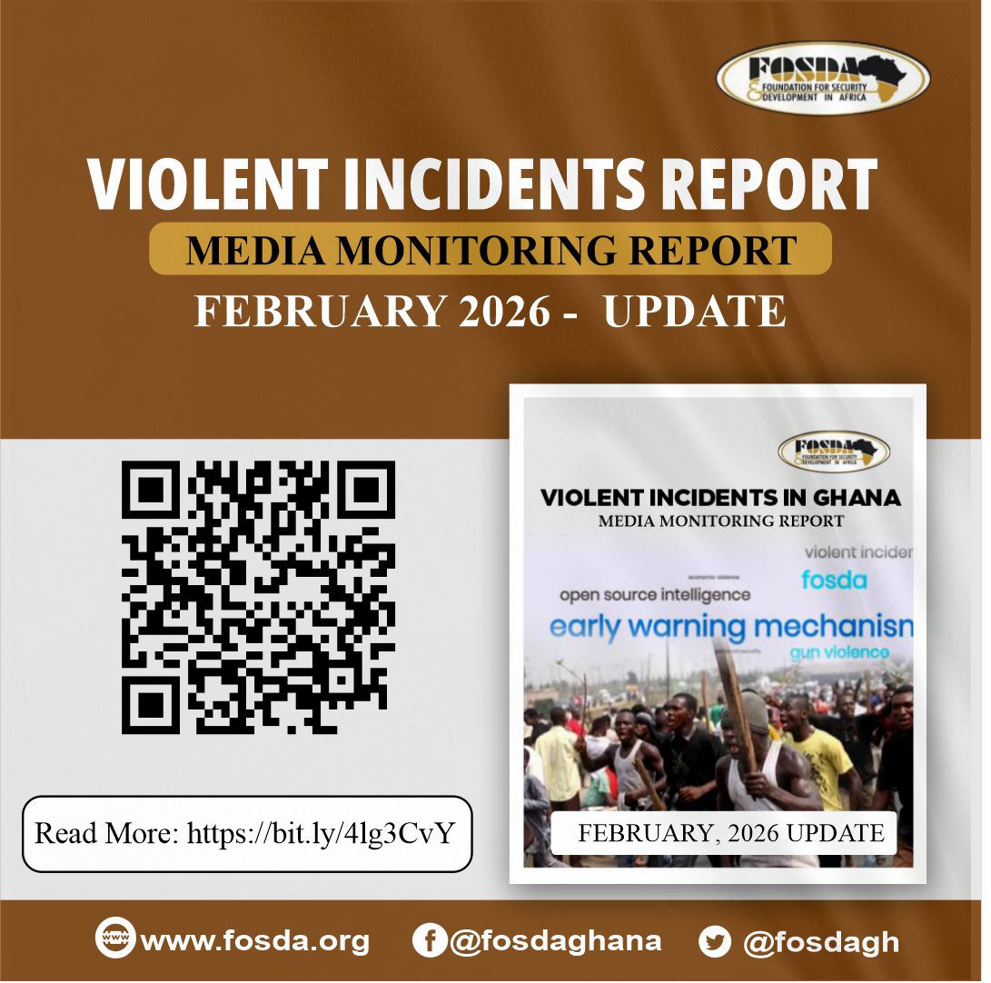 A total of sixty-nine (69) violent incidents were recorded across Ghana in February 2026. Of these, Physical violence accounted for 25 incidents (36%). There were 16 (23%) cases of Economic violence while Gun related incidents comprised 15 incidents (22%). There were 6 (9%) incidents of Social Violence and 4 (6%)cases of Sexual Violence. Psychological incidents contributed 3 (4%) cases. There were no Political violent incidents recorded during the period.